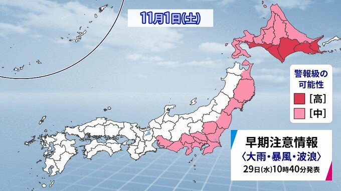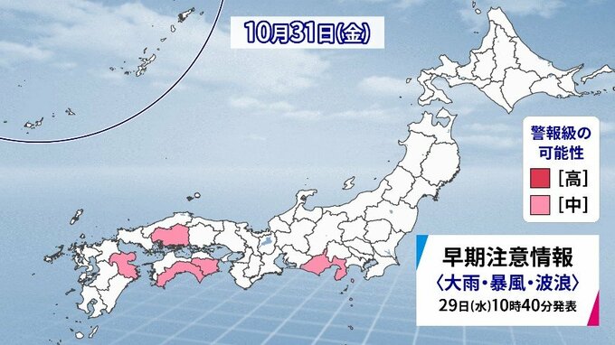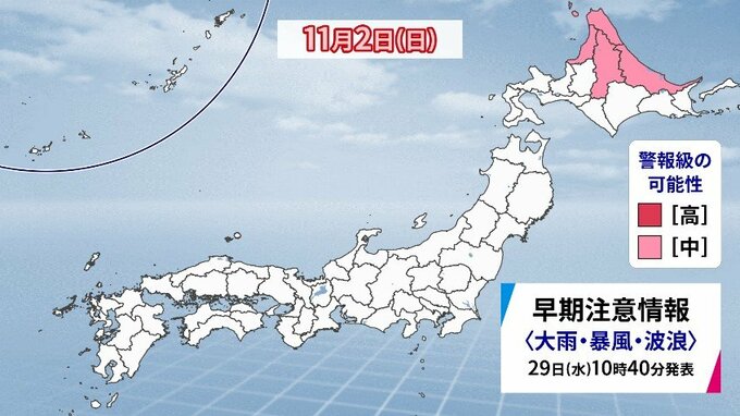 【画像②~④】は10月31日(金)~11月2日(日)にかけての「早期注意情報」です。