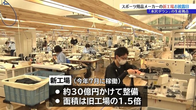 「水沢ダウン」で知られるスポーツ用品メーカーの岩手県奥州市の工場の建て替え工事が完了し、新たな工場がお披露目されました。