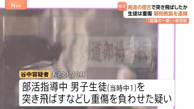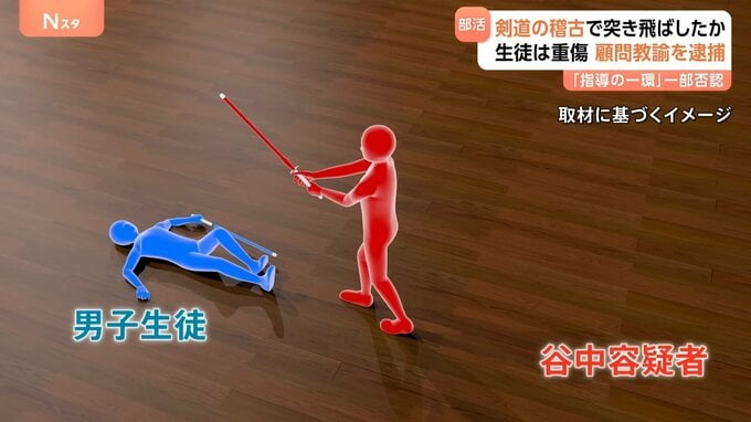生徒は1回目のかかり稽古中、谷中容疑者からの攻めを受けて背中から倒れ込みますが、稽古は続行。5分の休憩後、2回目の稽古でもさらに谷中容疑者から攻撃を受けて2~3回倒れ込みますが、3回目のかかり稽古も行われたということです。