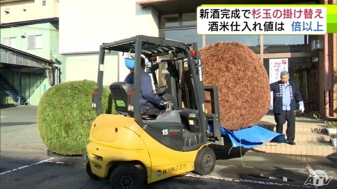 青森県おいらせ町の酒造会社で、新酒完成の目印「杉玉」の掛け替え作業が行われました。2025年は酒米の仕入れ値が倍以上に高騰していて、新酒の仕込みは2024年の7割ほどにとどまっています。直径約1.8m、重さ600k…