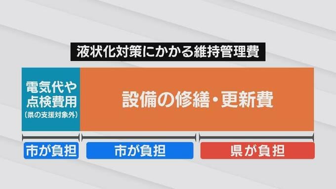 液状化対策の費用負担についてです。これまでの協議で、維持管理費全体の7~8割を占めるとされる、設備の修繕や更新といった長寿命化のための費用は、県と被災した市が折半する形で、全額負担することが決まっていました。