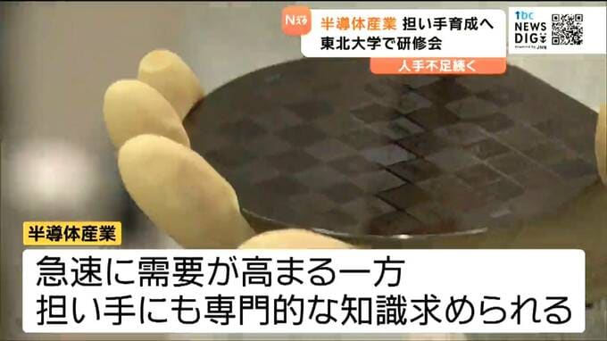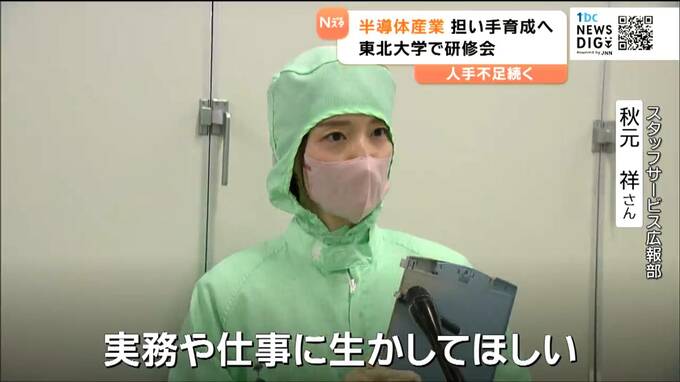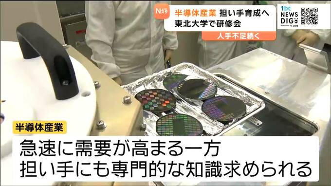 半導体製造の基礎を学ぶ研修会が、東北大学で開かれ、派遣エンジニアが半導体の仕組みなどを学びました。
