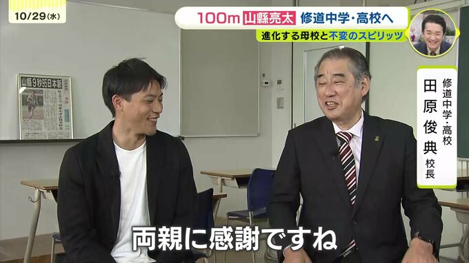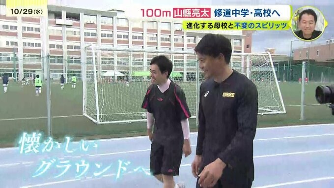 「いやあ、なんかこう懐かしいですね。グラウンドの奥の隅っこでやる陸上部、陸上班の練習、はい」