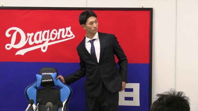中日の契約更改が29日始まり、ドラフト3位ルーキーの森駿太選手は20万円アップの620万円でサインした。