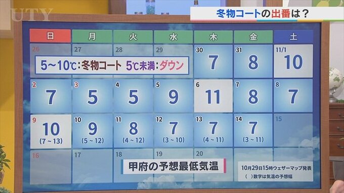 5℃~10℃は冬物コート、5℃未満はダウン。もうこれは冬物コートを出しちゃって大丈夫です。