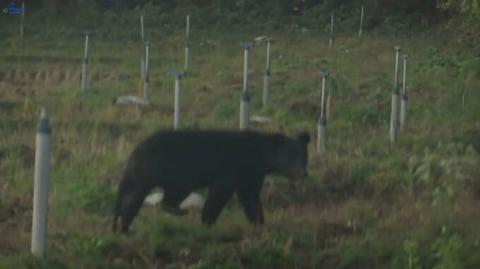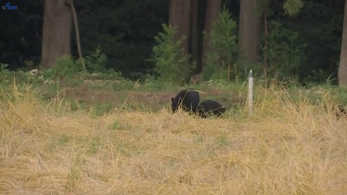 29日の午後4時半ごろ、別の場所で商店のクマ被害を取材した記者が、警戒の状況を調べるために車を走らせていたところ田んぼに3頭のクマが。
