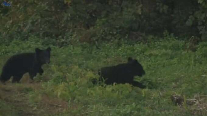 IBC秋田支局の記者が車で走行中にクマの親子に遭遇し、撮影しました。