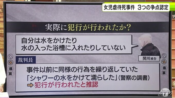 まず、関川被告は「自分は水をかけたり水の入った浴槽に入れたりしていない」として無罪を主張していました。
