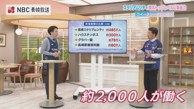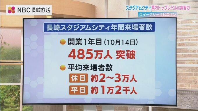 【平】ジャパネットホールディングスの発表では、スタジアムシティの1年目の来場者数はおよそ485万人で、平均来場者数は休日がおよそ2~3万人、平日がおよそ1万2千人です。