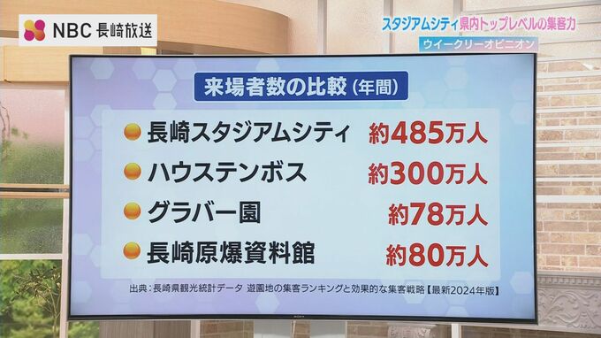 【平】スタジアムシティへの来場は観光目的だけではないのですが、ハウステンボスが約300万人、グラバー園や原爆資料館が約80万人ですので、その規模感はおわかりいただけると思います。