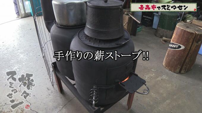「薪を作っていた。薪ストーブ焚いていますから見ていってください」