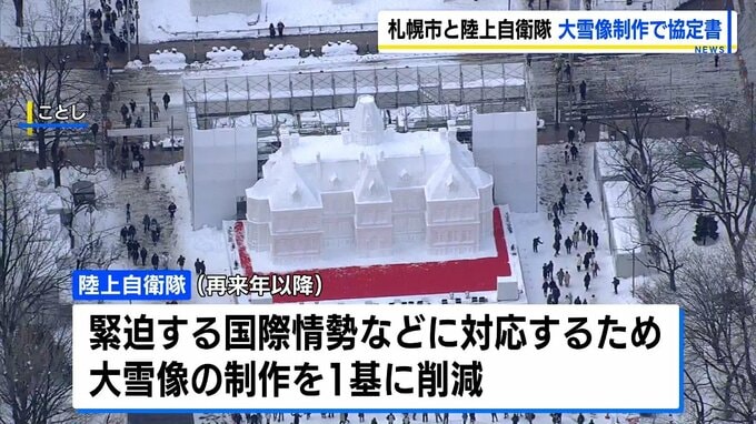 陸上自衛隊は緊迫する国際情勢などへの対応で、大雪像の制作を1基に減らすことを決めています。