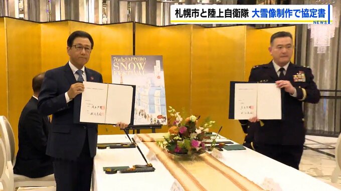 札幌市と陸上自衛隊は来年の「さっぽろ雪まつり」で大雪像などを制作に関する協定書を交わしました。