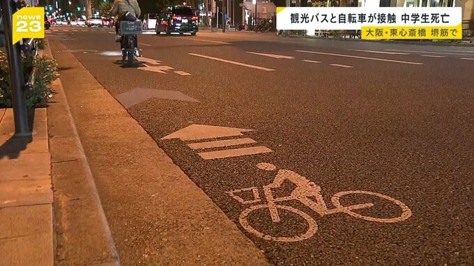 10月29日夕方、大阪・東心斎橋の車道で観光バスと自転車が接触する事故があり、自転車に乗っていた男子中学生が死亡しました。 29日午後4時半ごろ大阪市中央区東心斎橋で、「バスと自転車の事故」と110…