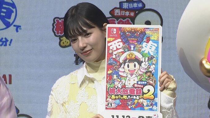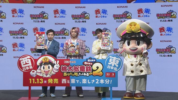 Snow Man・佐久間大介さん、霜降り明星・せいやさん、俳優・石井杏奈さんが、コナミデジタルエンタテインメント『桃太郎電鉄2 〜あなたの町も きっとある〜』の発売記念&新TVCM発表会に登壇しました。