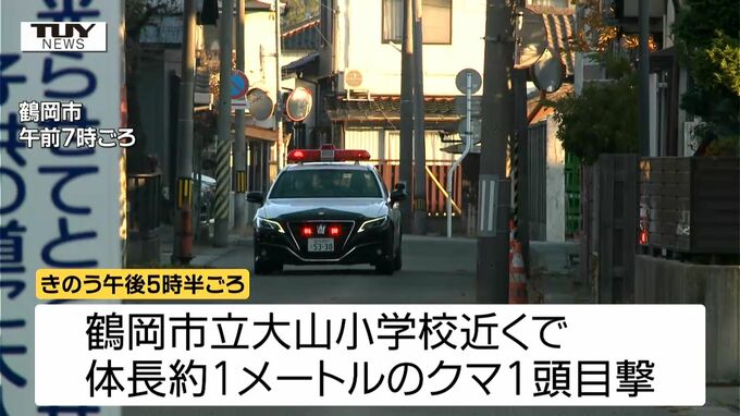 市や警察によりますと、きのう午後5時半ごろ鶴岡市立大山小学校近くで体長およそ1メートルのクマが1頭目撃されました。