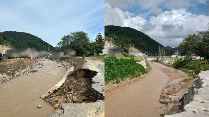 河川の氾濫により、堤防や護岸に甚大な被害を受けた町野町では、土のう積み上げやコンクリートの吹付など、復旧工事が続いています。