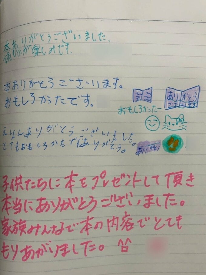 また、本を受け取ったお子さまたちや保護者の方から、たくさんのメッセージが寄せられています。SNSでは全文をご紹介しておりますが、ここでも一部をご紹介させてください。