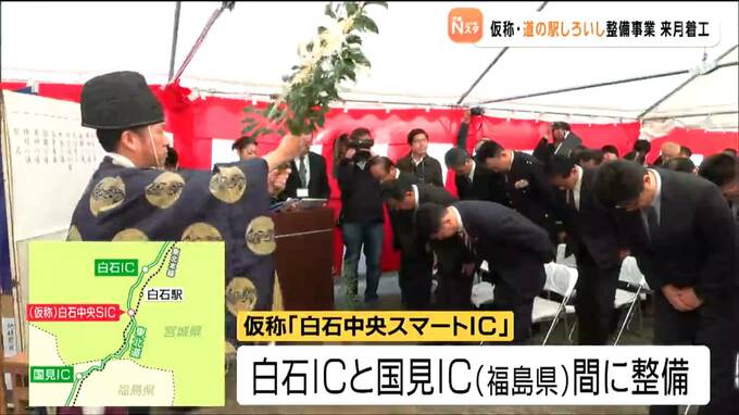 白石市で11月から建設が始まる道の駅、そして、スマートインターチェンジの本格的な着工を前に、10月29日に関係者らが神事で工事の安全を祈願しました。