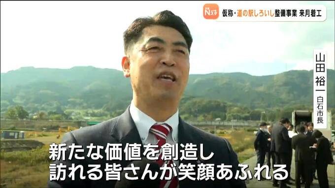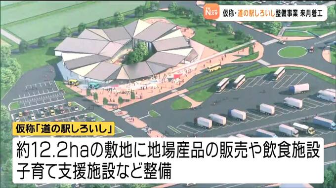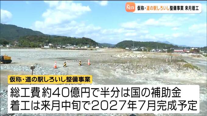仮称・道の駅しろいし整備事業は総工費が約40億円で、半分は国の補助金適用されます。着工は11月中旬で、2027年7月完成予定です。