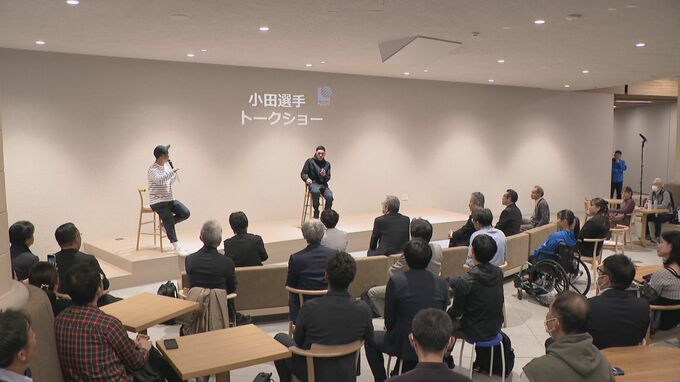 小田選手は日本ガイシが支援する選手の一人で、社員に向けて「挑戦」をテーマにしたトークショーを行いました。