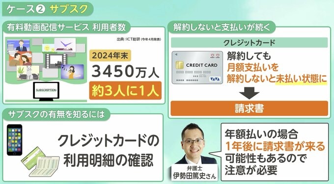 有料動画配信サービスなどのサブスクは、クレジットカード側を解約しても月額払いの契約を解約しない限り、未払い状態となって請求は続いてしまいます。