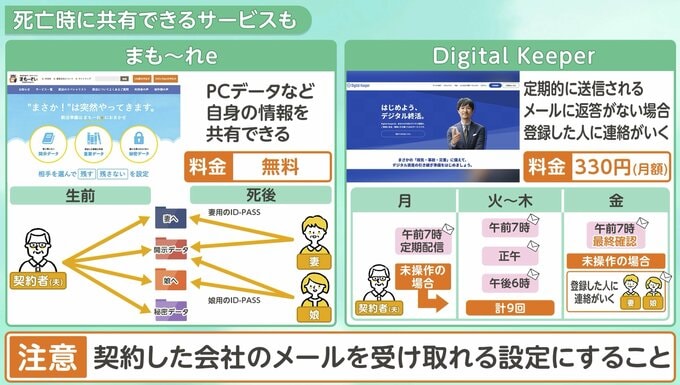 アナログではなくデジタルでという人は、死亡時に情報を共有する民間サービスもあります。