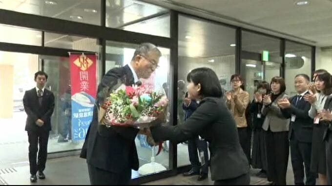 午前8時ごろ市役所に登庁した山田市長は、職員らおよそ100人に出迎えられました。