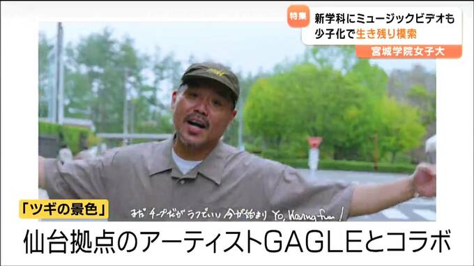 仙台を拠点に活動するヒップホップアーティスト「GAGLE」とコラボしたミュージックビデオも作成。ロケは大学で行うなどPRに力を入れています。