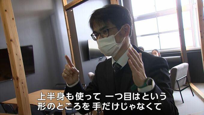 「プレゼンは上半身も使って、『一つめは』と説明するところを、手だけじゃなくって」