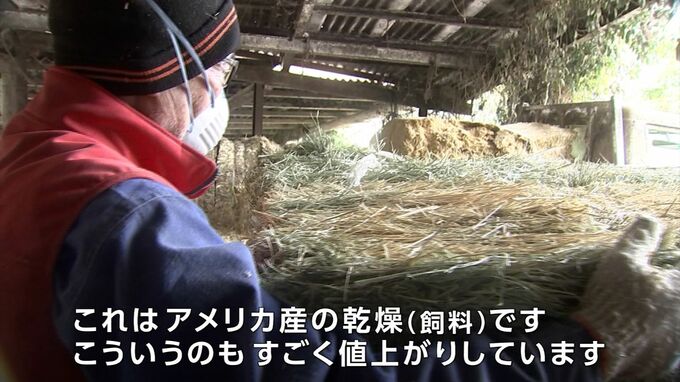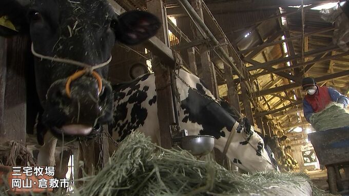 飼料価格は、2年前に比べると2倍ほどに跳ね上がったといいます。およそ40頭の乳牛を飼育する、倉敷市の牧場です。円安やウクライナ情勢などによる値上がりが、経営を圧迫します。