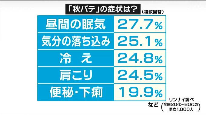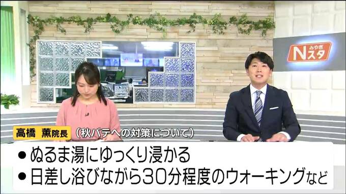 高橋院長は「秋バテ」への対策としては、ぬるま湯にゆっくり使ったり、日差しを浴びながら、30分程度のウォーキングをしたりすることも有効だと話していました。