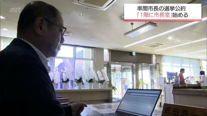 宮崎県串間市の武田市長は、9月の市長選で掲げていた「市役所1階に市長室を設ける」という公約を受けて、30日から市役所ロビーでの執務を始めました。9月の串間市長選挙で「市役所1階に市長室を設ける」という公約…