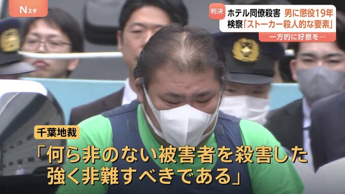 去年、千葉県市原市のホテルで従業員の女性が殺害された事件で、女性の同僚だった男に懲役19年の実刑判決が言い渡されました。去年11月、千葉県市原市のホテルで、従業員の佐伯仁美さん(当時56)が殺害された事件…