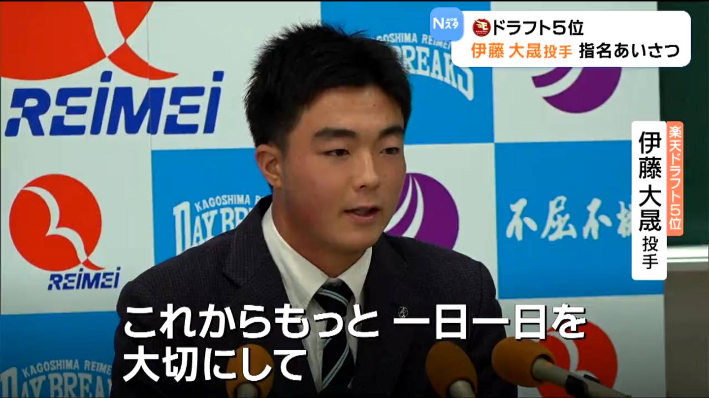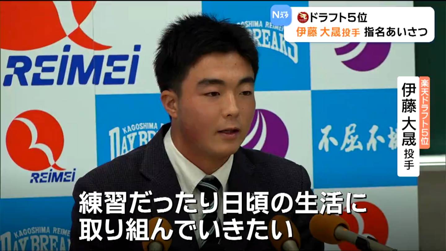 プロ野球・東北楽天イーグルスからドラフト5位で指名された鹿児島・れいめい高校の伊藤大晟投手が指名あいさつを受けました。