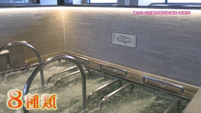 風呂エリアは2階。地下1200mから湧き出る天然温泉は弱アルカリ性単純温泉で、美人の湯としても大人気!8種類のお風呂で存分に楽しめます。