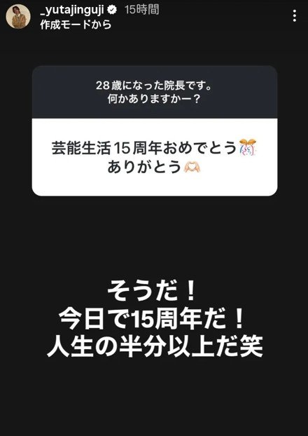 そして、「芸能生活15周年おめでとう ありがとう」というファンからのお祝いのメッセージに神宮寺さんは、「そうだ! 今日で15周年だ! 人生の半分以上だ笑」と綴っています。
