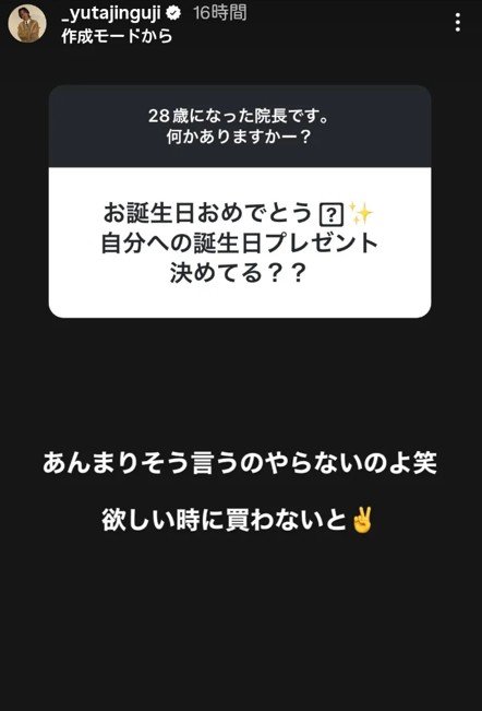 Number_iの神宮寺勇太さんが自身のインスタグラムのストーリー機能を更新。