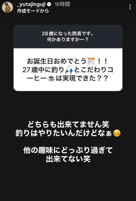 「27歳中に釣りとこだわりコーヒーは実現できた??」という質問には、「どちらも出来てません笑 釣りはやりたいんだけどなぁ 他の趣味にどっぷり過ぎて出来てない笑」と、忙しい中、いろんなことを楽しんでいる様子。
