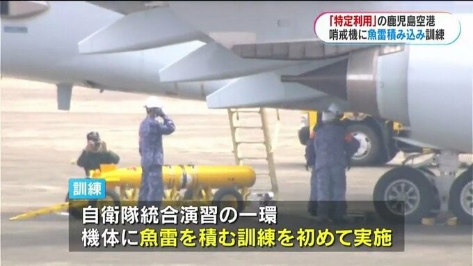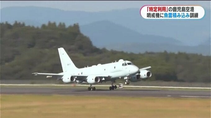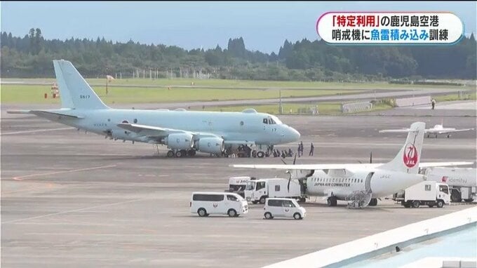 鹿児島空港に現れた哨戒機。鹿児島空港で30日、海上自衛隊の哨戒機に魚雷を積み込む訓練が初めて行われました。