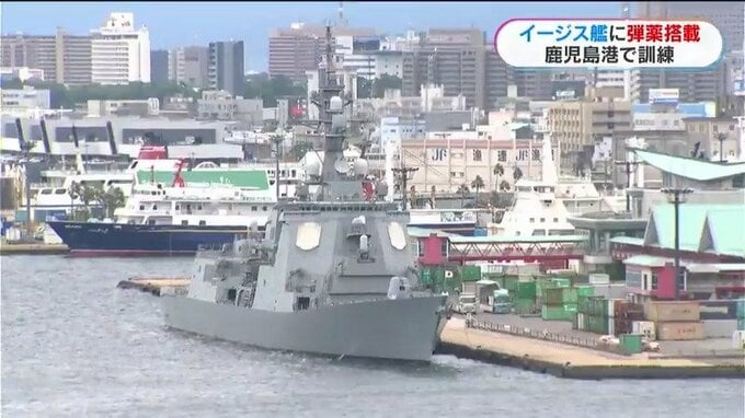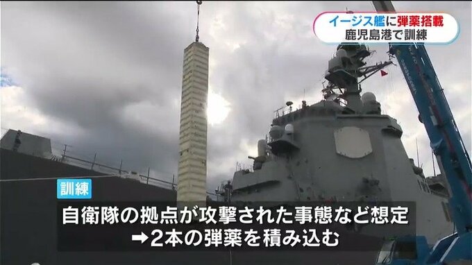 鹿児島港では24日、自衛隊施設以外の民間の港で初めて、護衛艦に弾薬を積み込む訓練が行われました。