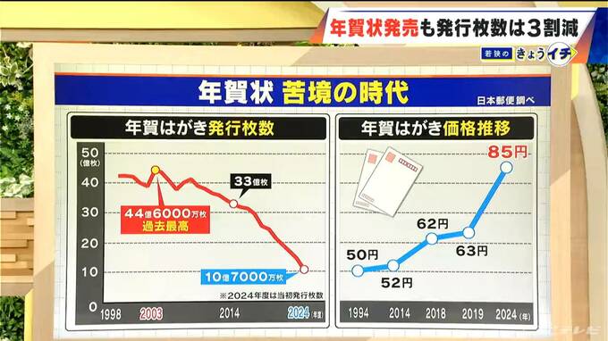 年賀状ばなれに「SNSの普及や物価高の影響も…」