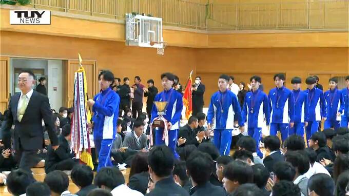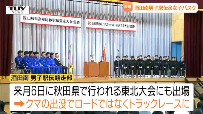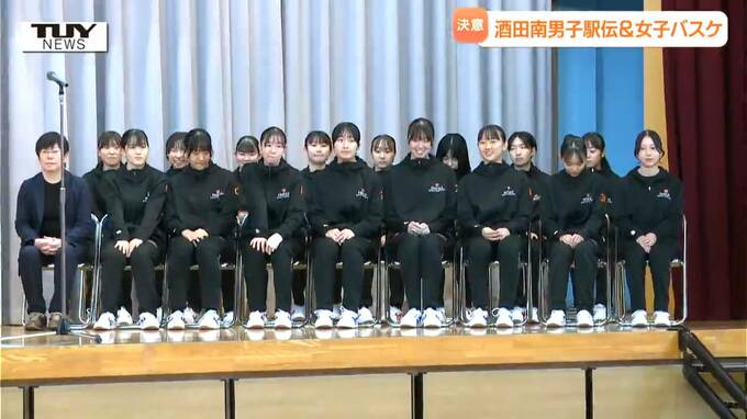 県の予選を勝ち抜き全国大会出場を決めた酒田南高校の男子駅伝競走部と女子バスケットボール部の優勝報告会がきょう行われました。