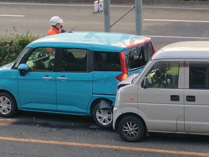 警察によりますと、車3台の玉突き事故が起きていて、信号待ちをしていた軽乗用車に乗用車が追突して、軽乗用車は追突されたはずみで前の乗用車に追突したということです。