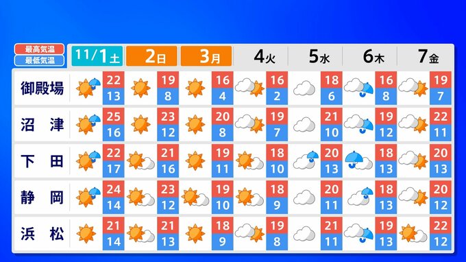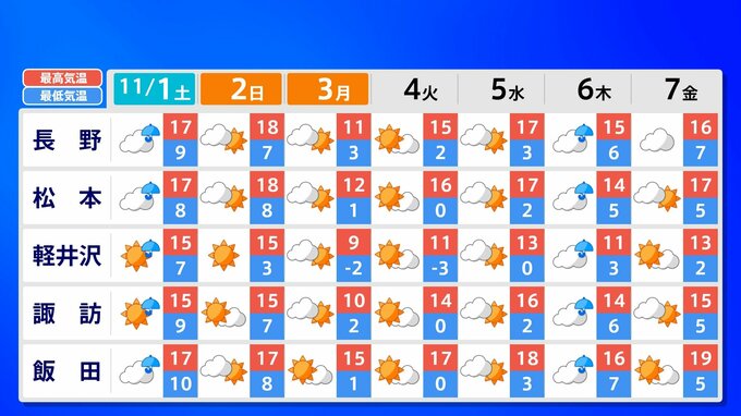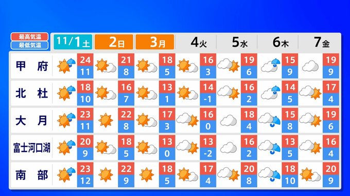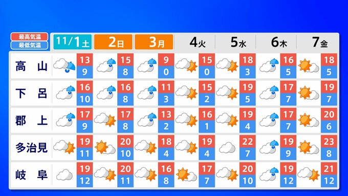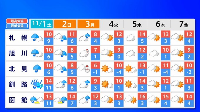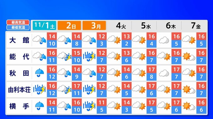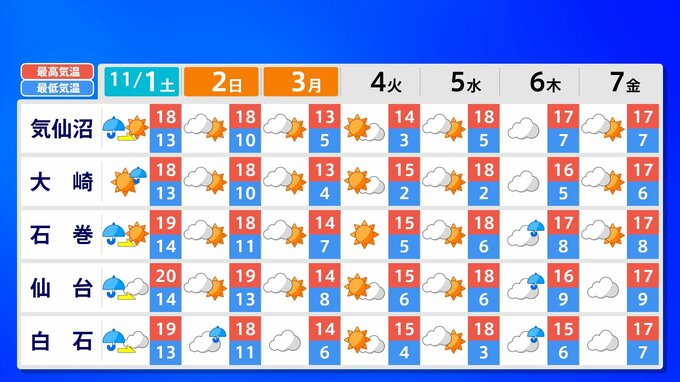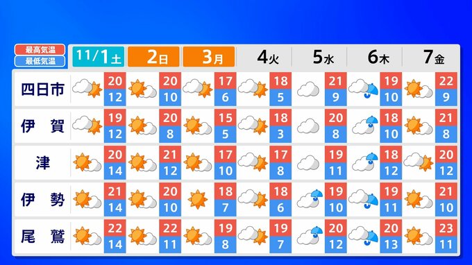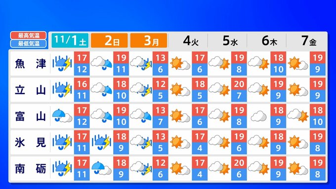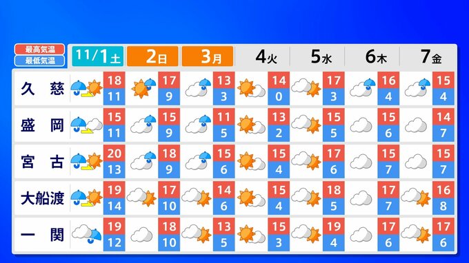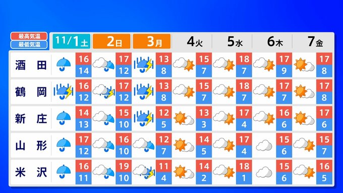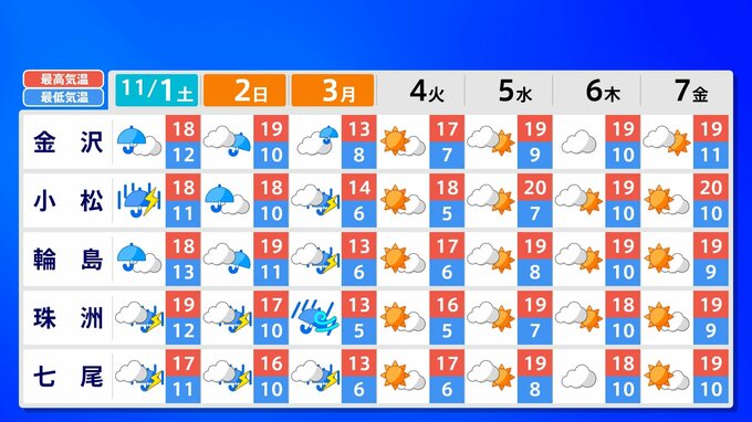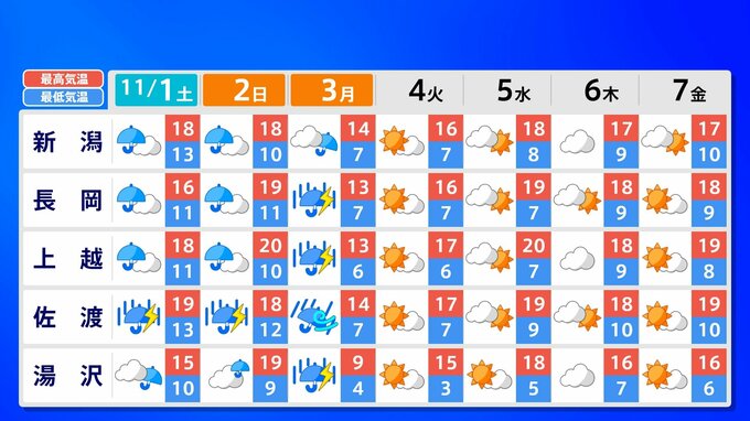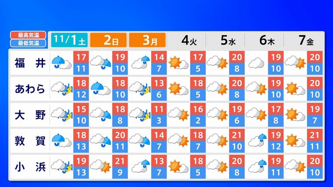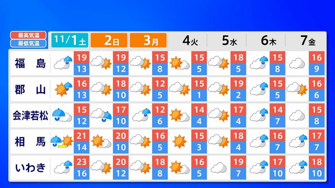 3連休前半は雨マーク多い(11月1日(土)~7日(金))