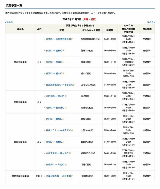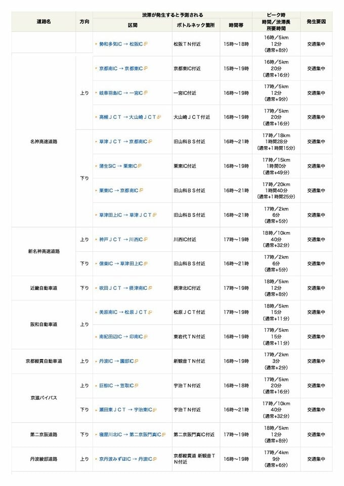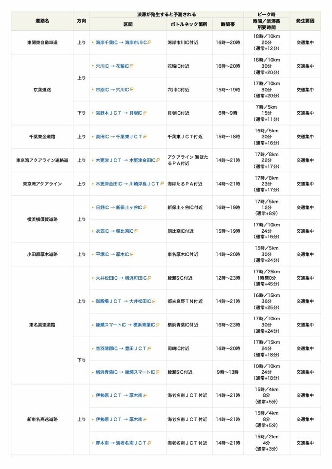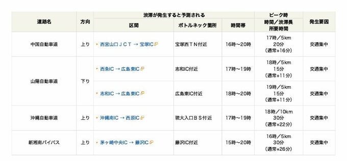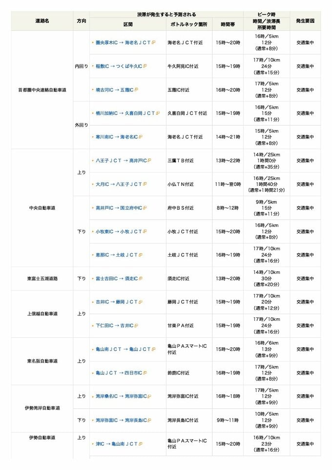 【20キロを超える渋滞予測】※時間/渋滞長はピーク時