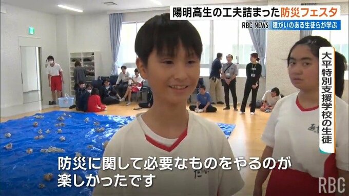 このほか、災害で瓦礫が散乱している状況を想定したゲームなど、高校生の工夫が詰まった授業が展開され、生徒たちは楽しみながら防災について学んでいました。