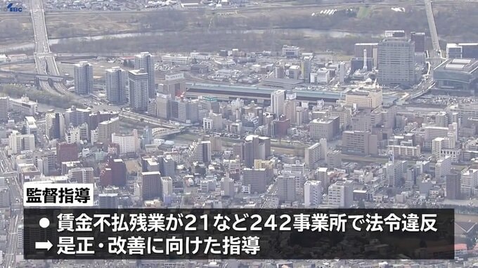 また、21の事業場で残業代が支払われていないなど、242の事業場で労働基準関係法令の違反が認められ、是正や改善に向けた指導を行いました。