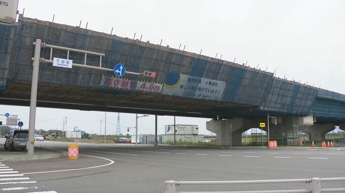 現場では「海側環状」の4車線化工事に向けて高架橋を新設する工事が行われていて、女性は高さ約5メートルある足場の地上から3メートルの場所で見つかりました。