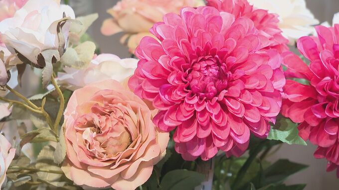 (甲斐蓉子キャスター)「触ると生花の質感とは違うんですよ。この近さで見ても造花とはわかりません」